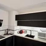 Una cucina completamente attrezzata dell'appartamento include una lavastoviglie e un forno.
